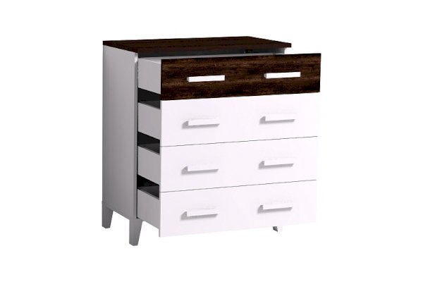 Комод Норвуд идеально подходит для хранения постельного белья и одежды для сна, а если его дополнить Зеркалом навесным Норвуд 7 – он сможет одновременно выполнять функции туалетного столика. Столешница толщиной 22 мм и фасад верхнего ящика в декоре Орех Шоколадный контрастируют с белым декором модуля. Четыре выдвижных ящика на направляющих полного выдвижения глубиной 350 мм открываются/закрываются легко и плавно. Ножки со скосом значительно облегчат процесс уборки в спальне.