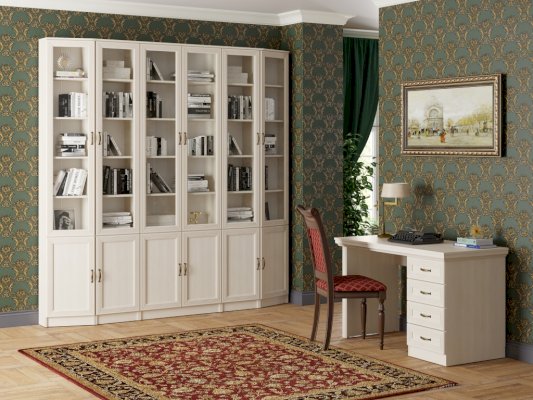 Ручка-скоба выполнена из металла бронзового цвета. Она удобна в использовании и проста в установке. В коллекции 5 модулей, их количество оптимально для создания композиции для кабинета. Стол письменный можно использовать и как самостоятельный предмет интерьера в жилых и офисных помещениях.