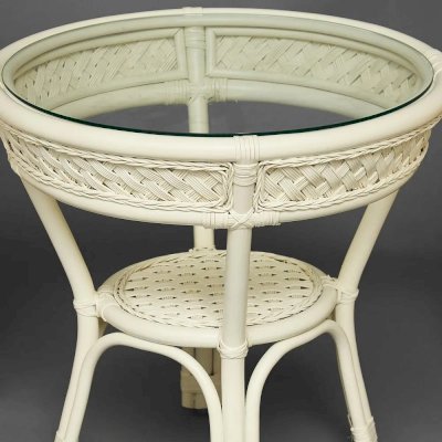 Изумительный террасный комплект мебели Secret De Maison из коллекции ANDREA, состоящий из столика и двух кресел, будет прекрасно смотреться в загородном доме, на дачной веранде, отлично подойдёт для отдыха на приусадебном участке. Уникальные плетеные узоры из натурального ротанга, выполненные вручную с использованием нескольких видов традиционного индонезийского плетения, добавят ноты изысканности и индивидуальности в ваш интерьер. Небольшой столик со столешницей из закаленного стекла, дополненный миниатюрной нижней полочкой, практичен и элегантен. Стекло обладает повышенной прочностью, долговечностью, способно многие годы не утрачивать своей первоначальной привлекательности. Два эргономичных кресла с мягкими подушками позволят удобно расположиться для комфортного отдыха. Тканевая обивка подушек проста в уходе, прослужит вам долгие годы, сохраняя свой первоначальный вид. Эта прочная и практичная мебель покрыта прозрачным матовым лаком, устойчивым к УФ-излучению, способна выдержать большие нагрузки, устойчива к повышенной влажности и долгие годы сохранит свой презентабельный вид. Комплект идеально сочетается с мебелью из коллекции ANDREA, поставляется в собранном виде.