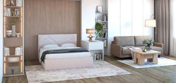 Кровать Бьянка впишется в любой современный интерьер и станет любимым местом в доме. Ее особенности: высокое и мягкое изголовье со стильной стёжкой, небольшие размеры по ширине относительно спального места – всего 11 см плюс к размер у спального места, особая устойчивость за счет стоящей на полу царги.