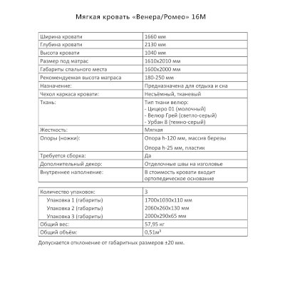 Спальное место: 160х200 см