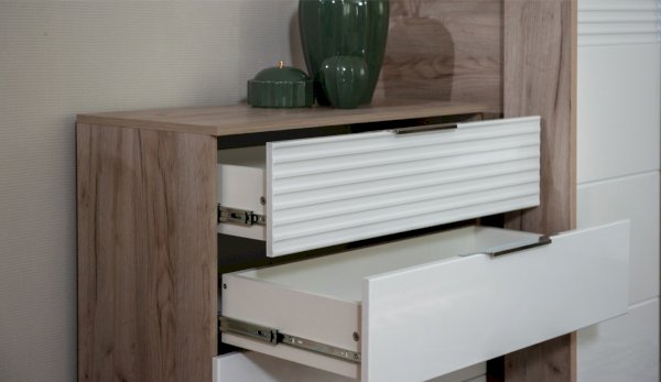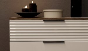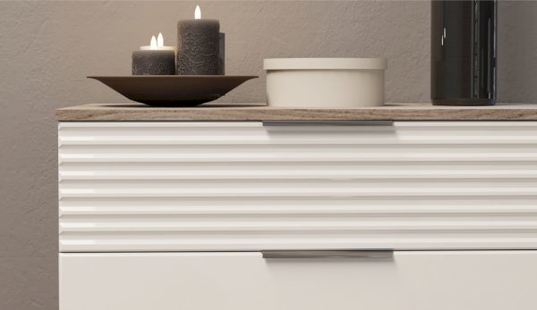 Цвет: Дуб крафт серый/Белый глянец High Gloss с фрезерованным рисунком "волна"