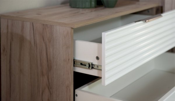• Задняя стенка и дно ящиков вставлены в паз