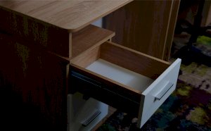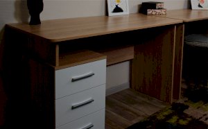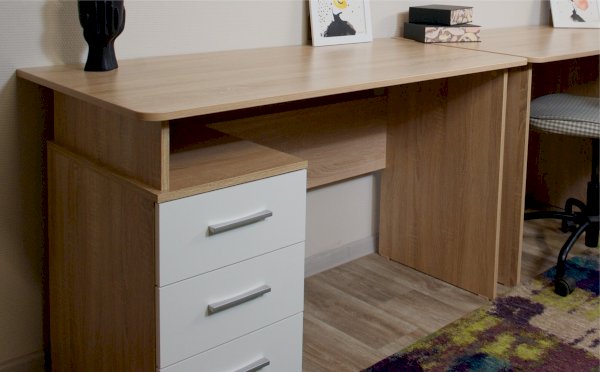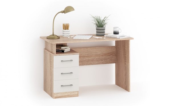 Стол письменный – удобное рабочее место для студента, школьника, отличное решение для кабинета с интерьером в скандинавском стиле. В столах системы Гарвард мягкие, удобные для опирающихся рук края, с кромкой в 2мм, а также, скруглённые углы столешницы. Корпус выполнен в теплом древесном цвете светлого дуба с приятной на ощупь фактурой, фасады - белые матовые. Нейтральные оттенки мебели позволяют легко вписаться уже в готовый интерьер.