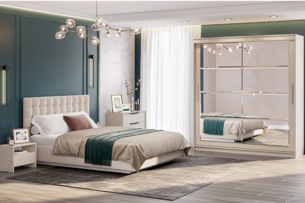 Шкаф-купе №3 — это вместительный и эргономичный шкаф, который станет удобным местом для хранения вещей и стильным элементом интерьера гостиной или спальной комнаты. Его фасады, укрытые стеклом, и огромная зеркальная панель с фацетом визуально расширяют пространство, легко сливаясь в композицию с окружающей мебелью.