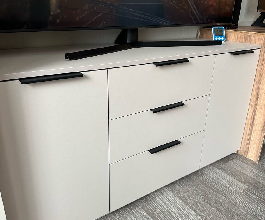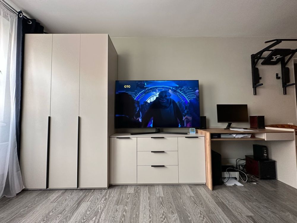 Взяли всю серию Чарли. Цвет не серый как везде пишут, серо-бежевый, теплый цвет, обратите внимание. Ящики без доводчиков, приходится дозакрывать, но за такую цену это некритично.