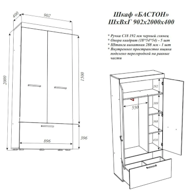 Шкаф Бастон (Эра) - за 12 440 руб. в Зарайске. Купите на сайте zaraisk.onlinemarketmebeli.ru или по телефону 8(800)505-30-63 уже сегодня! Уточнить наличие, комплектацию, актуальную цену можно бесплатно у менеджера ежедневно. Закажите Шкаф Бастон (Эра) до конца акции! Доступна покупка в кредит, рассрочку. Доставим со склада или на заказ.