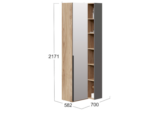 Угловой шкаф 366 с зеркальной дверью и переходным стеллажом Порто СМ-393.21.025 (ТриЯ)