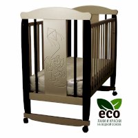 Кроватка декорирована фрезерным рисунком "Слоник". Уникальные фрезерные рисунки размером от 50 см на обеих спинках.