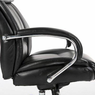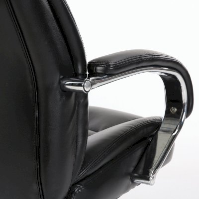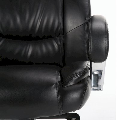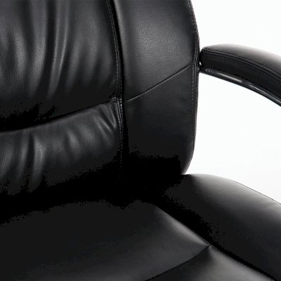Обивка кресла выполнена из рециклированной кожи - современного материала, созданного из измельченных частиц натуральной кожи. По эластичности и прочности рециклированная кожа максимально близка к натуральной, а также имеет запах выделанной кожи. Материал хорошо пропускает воздух, что положительным образом сказывается на комфорте во время эксплуатации. Рециклированная кожа износоустойчива, кресло способно сохранять привлекательный внешний вид длительное время.