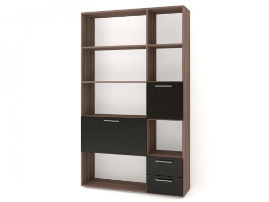 Данное изображение представлено в следующих цветах ЛДСП: корпус - Ясень Шимо тёмный, фасады - Венге Цаво.